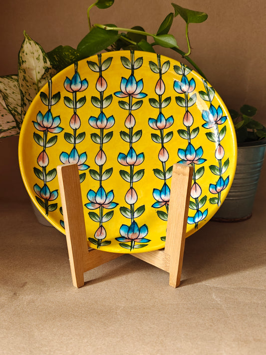 Blue Pottery 10" Plate - Yellow with Blue Flowers