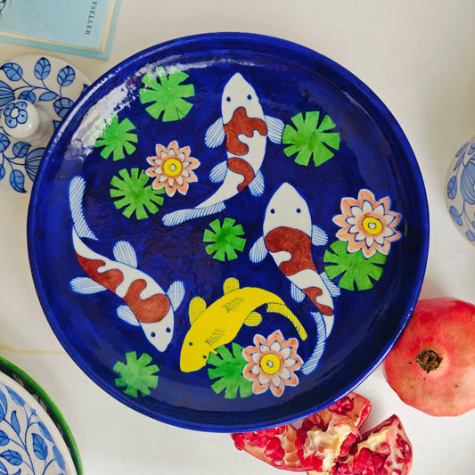 Chokar Exclusive - Blue Pottery 10" Koi Fish Plate