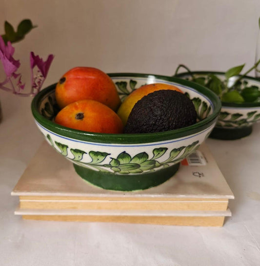 Hand Painted Green Floral Bowl