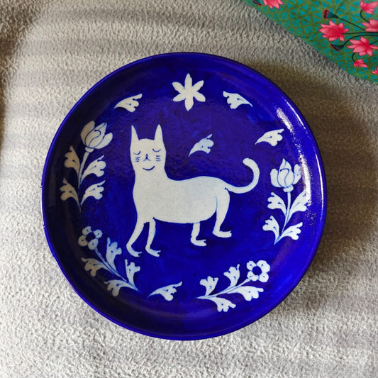 Chokar Exclusive - Whitey Blue Pottery Cat 8" Plate