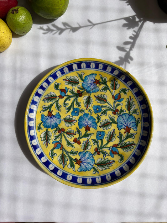 Blue Pottery 10" Plate - Yellow with Blue Flowers